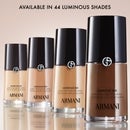 Disponibilă acum în 40 de nuanțe, această formulă inspirată de mătase se potrivește cu o varietate de tipuri de ten. Fondul de ten Armani învăluie tenul într-o nuanță neutră și catifelată, încercând să corecteze și să echilibreze tonul neuniform al pielii și ascunzând zonele problematice. Tenul este lăsat mătăsos și confortabil, îmbogățit cu o luminozitate subtilă.