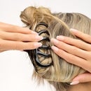 Gather hair and twist in desired style, then open the clip and place over the gathered hair to secure. Adjust clip for comfort.