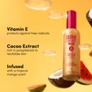 Ethylhexyl Palmitate, Diethylhexyl 2,6-Naphthalate, Octocrylene, Isododecane, Butyl Methoxydibenzoylmethane, Butyloctyl Salicylate, Ethylhexyl Salicylate, Polyester-8, Dextrin Palmitate, Ethylhexyl Triazone, Citrullus Lanatus (Watermelon) Seed Oil, Prunus Armeniaca (Apricot) Kernel Oil, Caprylic/Capric Triglyceride, Cocos Nucifera (Coconut) Oil, Ananas Sativus (Pineapple) Fruit Extract, Psidium Guajava (Guava) Fruit Extract, Theobroma Cacao (Cocoa) Seed Extract, Helianthus Annuus (Sunflower) Seed Oil, Silica, Diethylhexyl Syringylidenemalonate, Synthetic Fluorphlogopite, Tocopherol, Parfum (Fragrance), Tin Oxide, Vanillin, Tetramethyl Acetyloctahydronaphthalenes, Rose Ketones, Benzaldehyde, CI 77891 (Titanium Dioxide), CI 77491 (Iron Oxides).