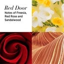 Red Door Eau De Toilette: Alcohol Denat., Parfum (Fragrance), Aqua/Water/Eau, Alpha-Isomethyl Ionone, Benzyl Salicylate, Propylene Glycol, Butyl Methoxydibenzoylmethane, Ethylhexyl Methoxycinnamate, Ethylhexyl Salicylate, Benzyl Alcohol, Benzyl Benzoate, Cinnamal, Cinnamyl Alcohol, Coumarin, Eugenol, Evernia Furfuracea (Treemoss) Extract, Farnesol, Geraniol, Hydroxycitronellal, Isoeugenol, Linalool, Ext. Violet 2 (Ci 60730), Red 4 (Ci 14700), Yellow 5 (Ci 19140). B02196.