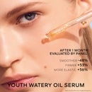 Result of 15 years of research and relying on 9 patents and 9 publications, the new-generation Youth Watery Oil Serum draws its repairing power from three honeys produced by the black bee, a species selected for its rarity and the power of its honeys. Thanks to its deep diffusion texture, the serum targets elasticity. Skin appears plump and radiant while fine lines are visibly filled. Light and universal, the exclusive² formula is infused with melt-in micro-beads and botanicals.