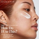 Cleanser: Good for: Morning + Evening How often: Daily Application: Apply a small amount to damp face and neck and massage gently for 30 seconds. Rinse and gently pat dry.