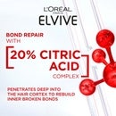 ![Image 1 - A white pump bottle of LOréal PARIS ELVIVE NEW BOND REPAIR LEAVE-IN SERUM with a red cap is displayed on a white background with circular clear dishes, alongside red molecular structures, and text that reads: STEP 4 LEAVE-IN SERUM SHIELDS HAIR BONDS & BOOSTS SHINE, 20% BOND REPAIR + [CITRIC ACID] COMPLEX FOR ALL TYPES OF DAMAGED HAIR, UP TO 82% STRONGER HAIR*, 90% MORE SHINE*, 12X LESS SPLIT ENDS**, with disclaimers *Instrumental test after application of Pre-Shampoo + Shampoo + Conditioner + Serum and **Instrumental test after application of Serum. Image 2 - A LOréal Elvive Bond Repair Leave-In Serum bottle with a red pump is shown on the left, next to instructions titled HOW TO USE, which state: Rub two drops between the palms of your hands, Apply evenly through the lengths and ends of wet or dry hair, Hair is stronger, shinier and easier to manage; The bottles label reads: LOréal Paris Elvive, New Bond Repair Leave-In Serum, Shields Hair Bonds Boosts Shine, 20% Bond Repair +[Citric Acid] Complex, For All Types Of Damaged Hair. Image 3 - A four-panel image depicts three before-and-after hair comparisons with the labels BEFORE and BONDED NO RETOUCH, showing blonde, brown, and curly hair transformed from damaged to smoother, healthier states, alongside a list of issues addressed: FOR ALL TYPES OF DAMAGED HAIR BREAKAGE SPLIT ENDS FRIZZ DRYNESS DULLNESS. Image 4 - An abstract image features a red molecular structure and translucent broken strand-like elements on a white background, with visible text LORÉAL PARIS ELVIVE BOND REPAIR WITH [20% CITRIC ACID COMPLEX] PENETRATES DEEP INTO THE HAIR CORTEX TO REBUILD INNER BROKEN BONDS.](https://s1.thcdn.com/design-assets/products/14300782/14300782/14300782-lfint-nov25.webp)