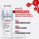 The second step of L'Oréal Paris’ Bond Repair routine, the Elvive Bond Repair Shampoo reduces the appearance of breakage, split ends and brittleness.