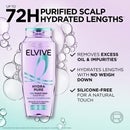 Drawing inspiration from skincare science, the L’Oréal Paris Elvive Hydra Pure 72H Purifying Shampoo is designed to cleanse the hair and scalp by removing excess oil, impurities, product build-up and dead skin cells.