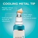 - Application: Dispense a small amount and glide the cooling metal applicator beneath the eyes, gently massaging until fully absorbed. If any product remains, softly tap it in using your finger. Suitable for use on its own or layered beneath concealer.
