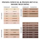 - Application: Apply using the arrow-shaped applicator. Blend into the skin using fingertips for a second-skin finish or with a concealer brush for controlled precision. Wear Prada Reveal Concealer alone for light-medium coverage or pair it with Prada Reveal Foundation for medium-full coverage.