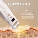 Fine microneedling helps refine the look of uneven texture and enhance serum application, while galvanic EMS technology supports a visibly sculpted appearance. Dual LED light adds another dimension, using red wavelengths to promote smoother skin and blue light to help clarify complexions prone to breakouts. Completing the experience, a gentle vibro massage is included to help stimulate the skin and enhance the performance of your existing routine.